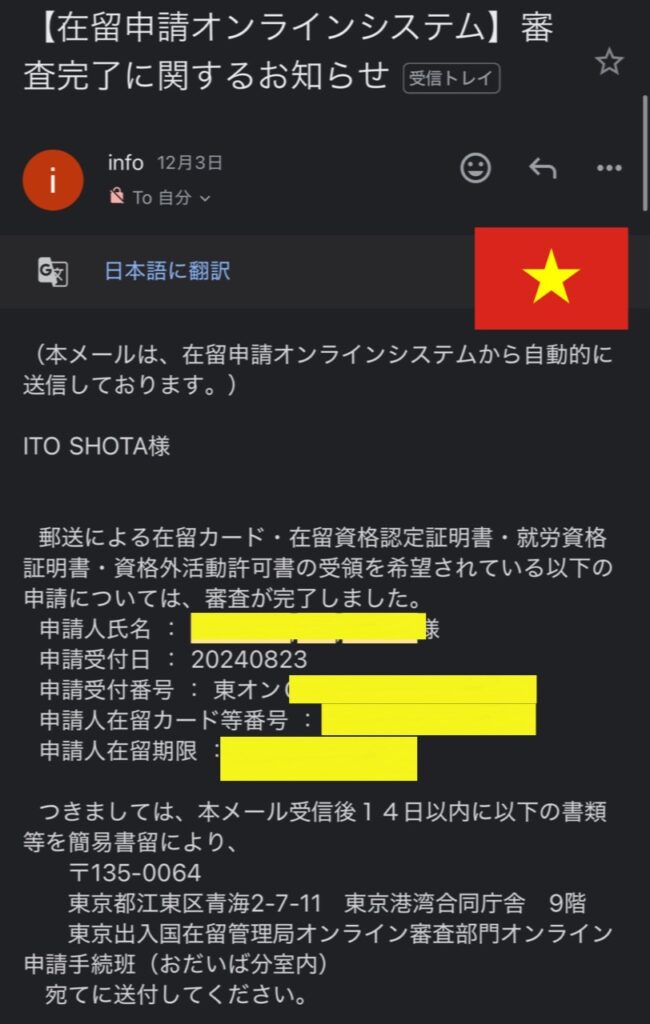 ベトナム人の奥様との国際結婚の手続きを弊所でサポートした後、上記①~③のポイントを抑えつつ説明資料の作成、説明に応じて必要な疎明資料の提出、奥様側の資料の回収・ベトナム語から日本語への翻訳等を行い、