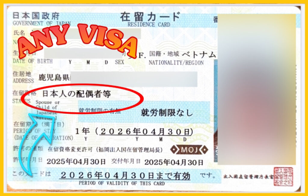 【鹿児島県】ベトナム人の奥様の技能実習2号ロのビザから日本人の配偶者ビザ(結婚ビザ)変更!!(福岡入管)